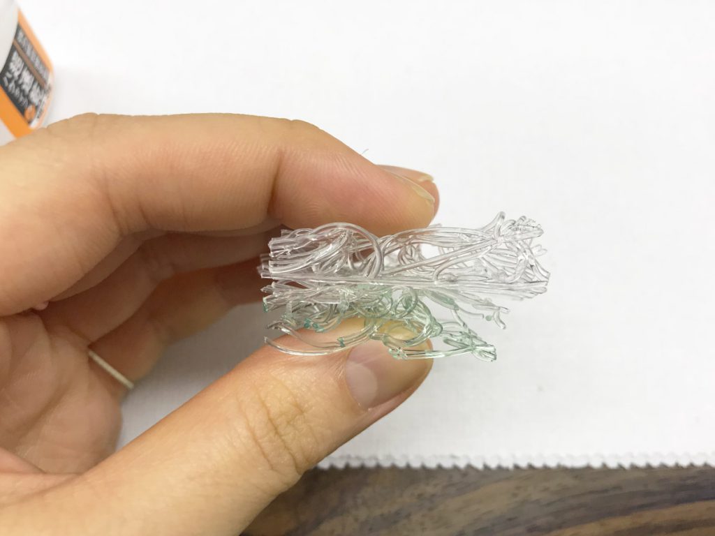 のりが透明のためわかりにくいですが、繊維どうしが固定されず、持ち上げるとすぐにはがれてしまいました。