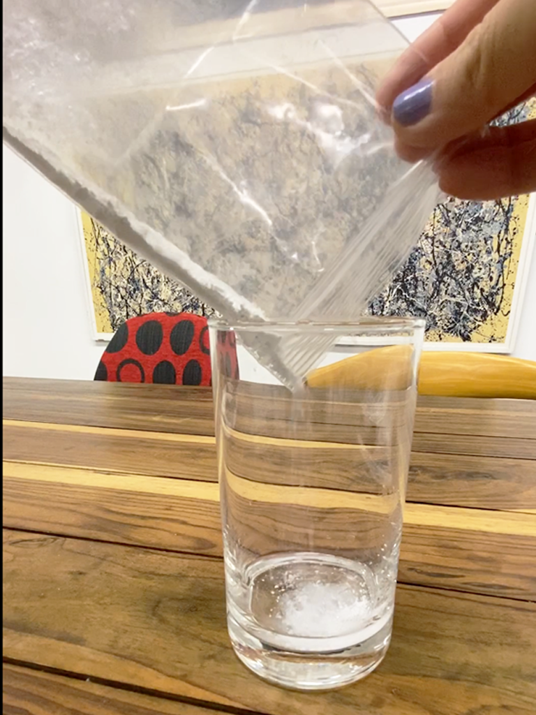 粉状にした抗菌素材を水に入れてペースト状にします。