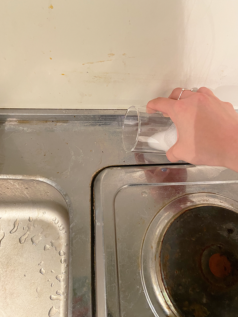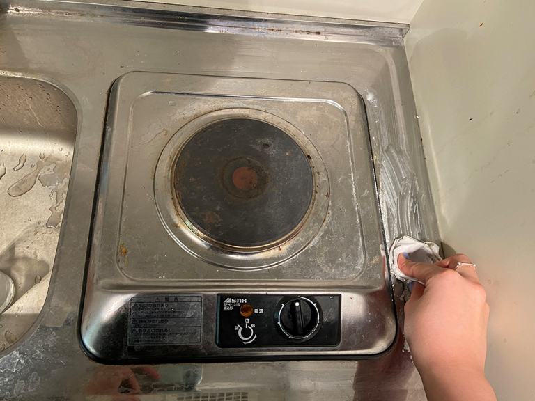 ペースト状にしたものを汚れが気になる箇所に直接たらします。 そのあとこすりながらふきとっていきます。