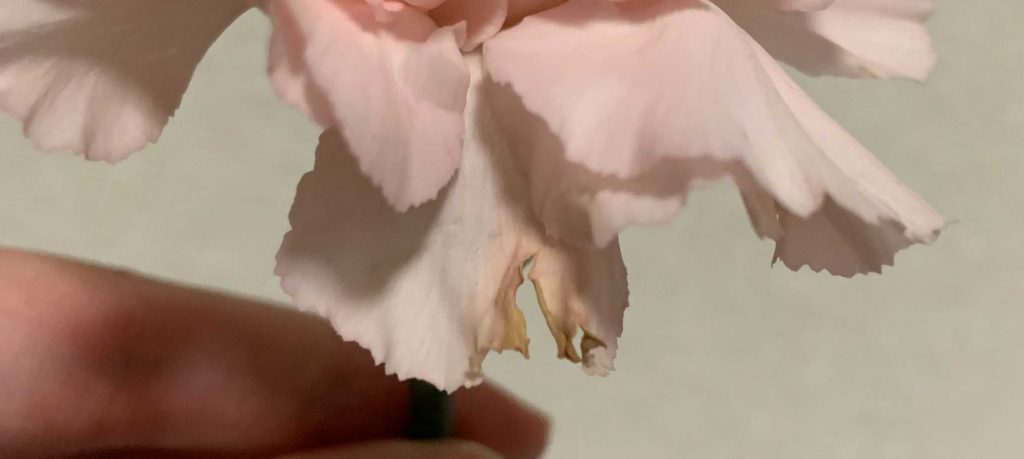 抗菌素材を使用した方の花も少しですが茎がふにゃっとして折れてきていました。真ん中は茎の折れ目の画像です。